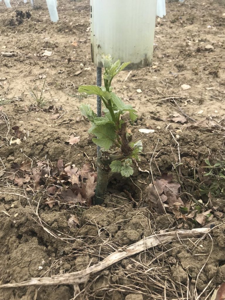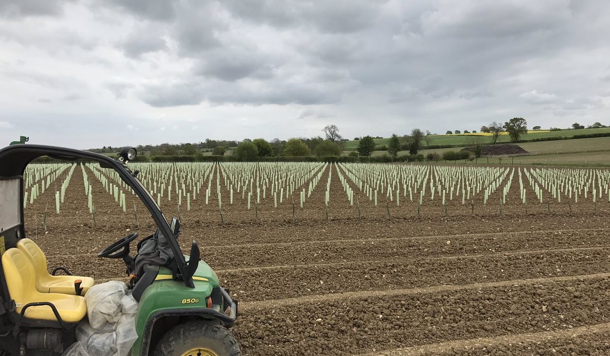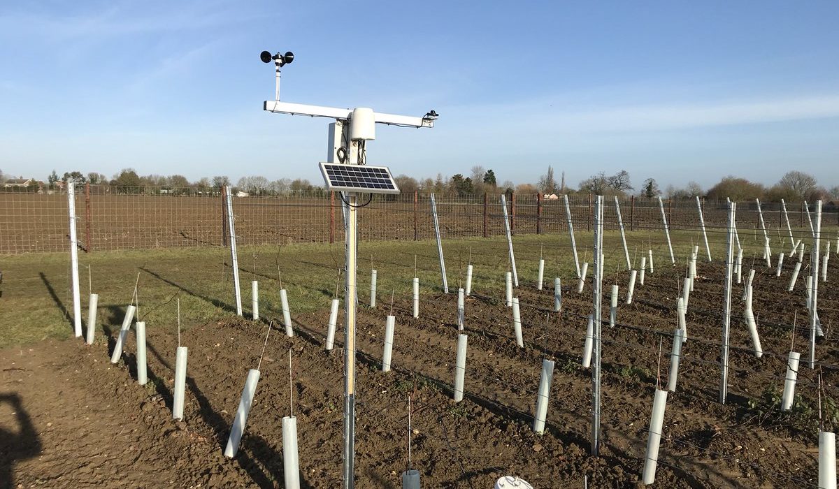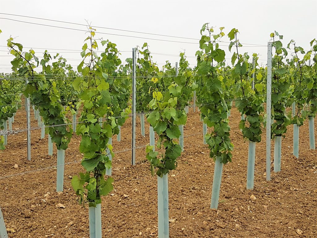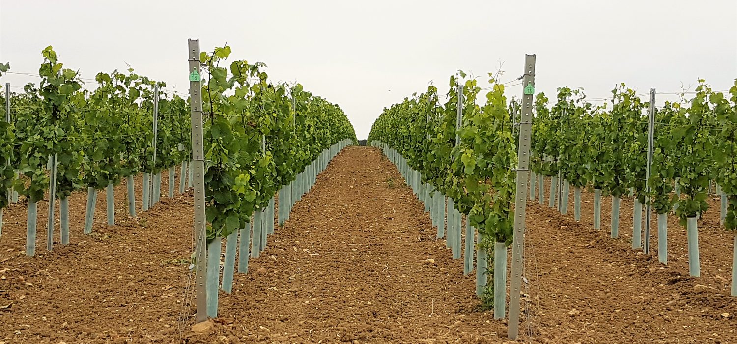 Before planting could start though, James needed to ensure the soil was at it’s prime – and this is where Material Change came into play. We provided James with our PAS:100 0-40mm compost which is rich in nutrients. James has used 50 tonnes of compost per hectare in soil preparation and in 4 to 5 years time will add more – cultivating it in around the vines. The planting was carried out using GPS precision guides resulting in laser straight rows of vines in any direction you look. They are planted 1 metre apart with a two metre gap between rows to allow access for machinery. There are two weather stations situated within the vines, giving James up-to-date meteorology information, giving him weather alerts directly to his mobile phone. The farm recently purchased 4 huge ‘Frost’ fans that will sit at the lower end of the field. These will automatically turn on when the temperature drops below 2 degrees C, to move the air around to prevent the frost settling on the vines – this could be catastrophic should the frost settle on the vines. In total, they have planted 46,000 German vines.